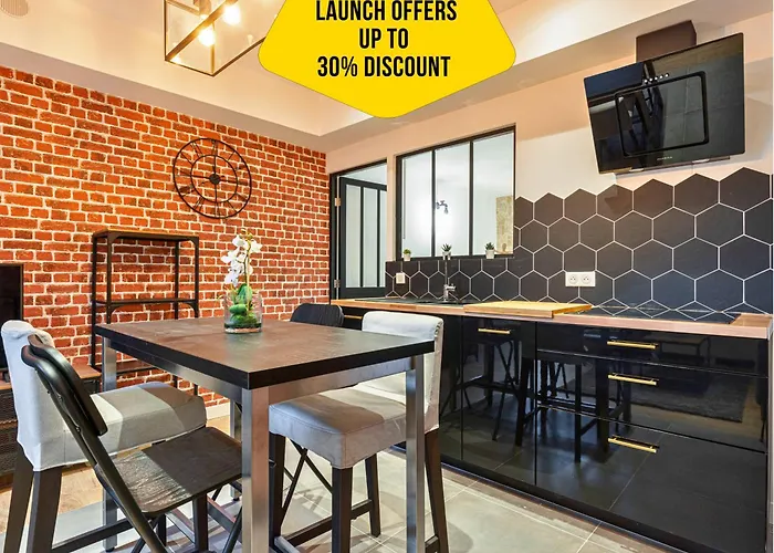 W apartamencie Loft Magnan - Parking - Ideal Couples -Beach -Tram & Supermarkets - New & Confort-Ac jest wyposażona kuchnia z piekarnikiem i zmywarką do naczyń dla tych, którzy chcą samodzielnie zaspokoić swoje potrzeby. Dworzec autobusowy Lenval / Promenade znajduje się tylko kilka kroków od apartamentu o powierzchni 34 m².